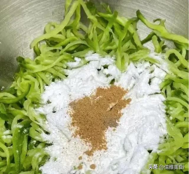 4. 往萝卜丝里加入适量淀粉和胡椒粉