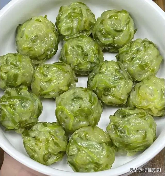 10.蒸好的萝卜丸子晴朗碧绿鲜亮,口感Q弹筋说念,进口鲜香完全,越吃越香!