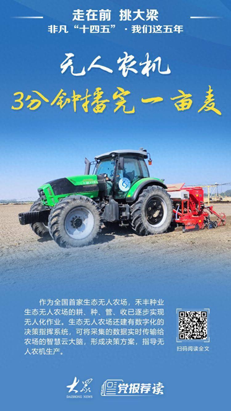 “无东说念主农机接受卫星导航,播撒一亩地仅需3分钟,百米功课精确度可达2.5厘米以内。”农场职责主说念主员先容。