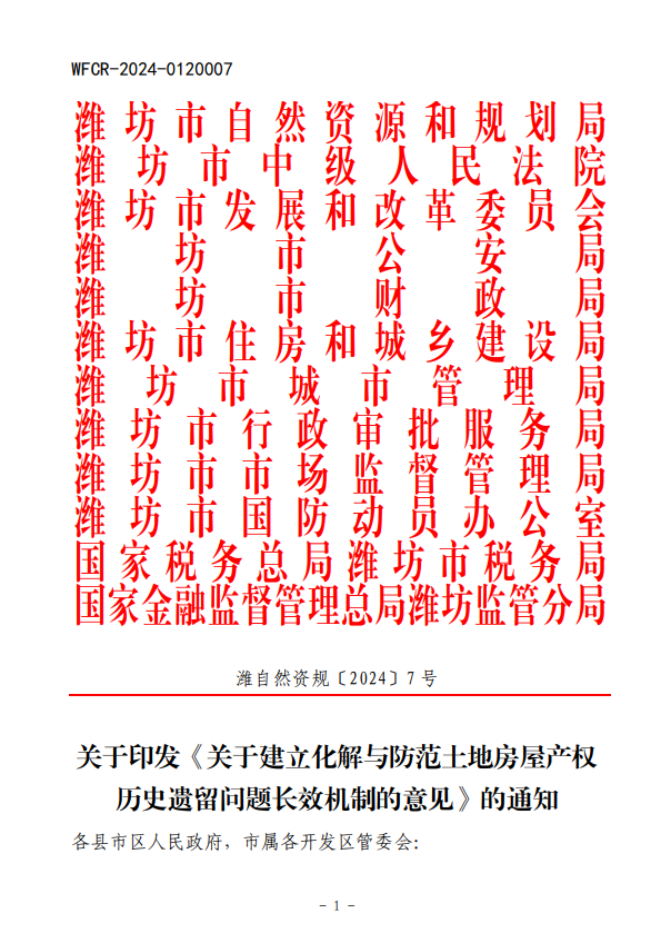 阐发当然资源部《当然资源部对于加速处罚不动产登记多少历史留传问题的示知》(当然资规〔2021〕1号)、山东省专项整治率领小组出台的《对于健全地皮房屋产权问题看管长效机制的看法》(当然资规〔2024〕5号),结合前段全市房屋产权确权颁证历史留传问题专项整治过程中遭受的骨子问题、灵验递次和得回的教授,在参考模仿外地先进作念法的基础上,最近,潍坊市多部门合股制定下发了《对于设立化解与看管地皮房屋产权历史留传问题长效机制的看法》(以下简称《看法》)。